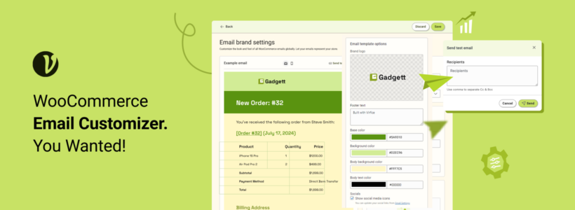 Virfice - Email Customizer for WooCommerce is a flexible WooCommerce email plugin that allows you to tailor your store’s emails to perfectly align with your brand's identity.