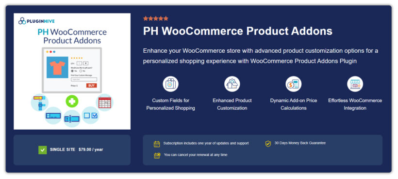 When looking for a premium WooCommerce product options plugin, identify the one that best suits your store and is within your total price range. Also, make sure to purchase from vendors that offer a money-back guarantee so that you can get a refund if the plugin doesn't work the way you want it to.