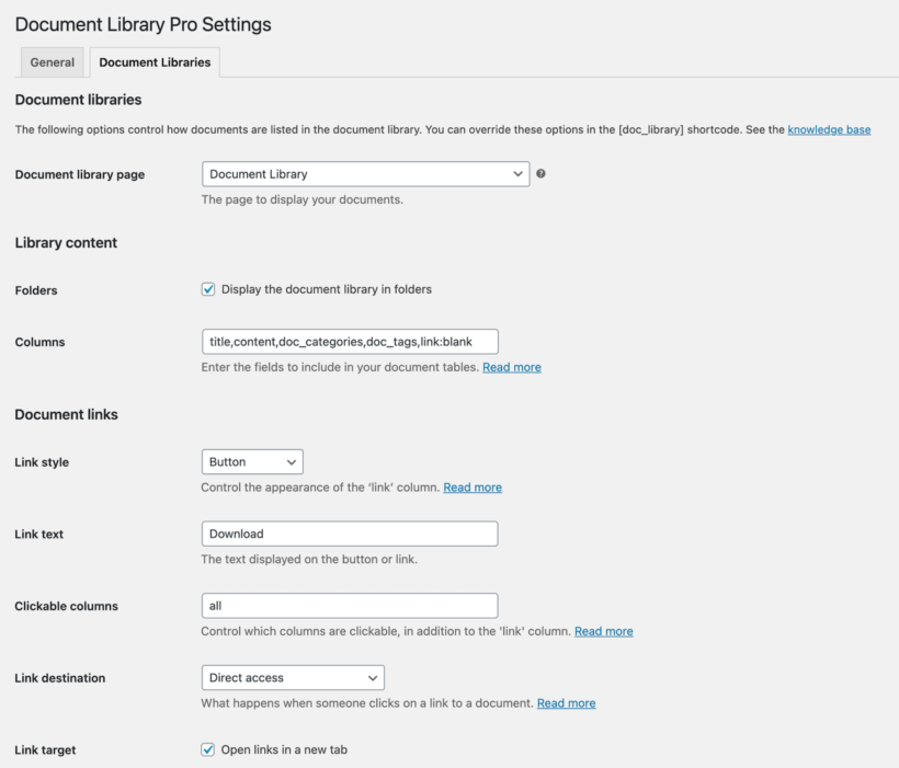 After installing the plugin, navigate to Documents â Settings from the WordPress admin panel to activate your license key. You can also configure the pluginâs settings from the âDocument Librariesâ tab of the settings page.
