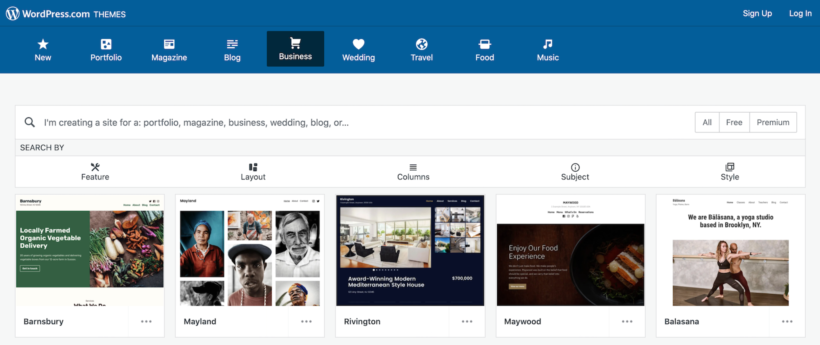 You can browse through the available themes for WordPress to use on your website. Itâs also worth mentioning that you can switch themes later on and customize them however youâd like.