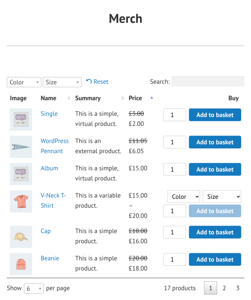 WooCommerce Product Table