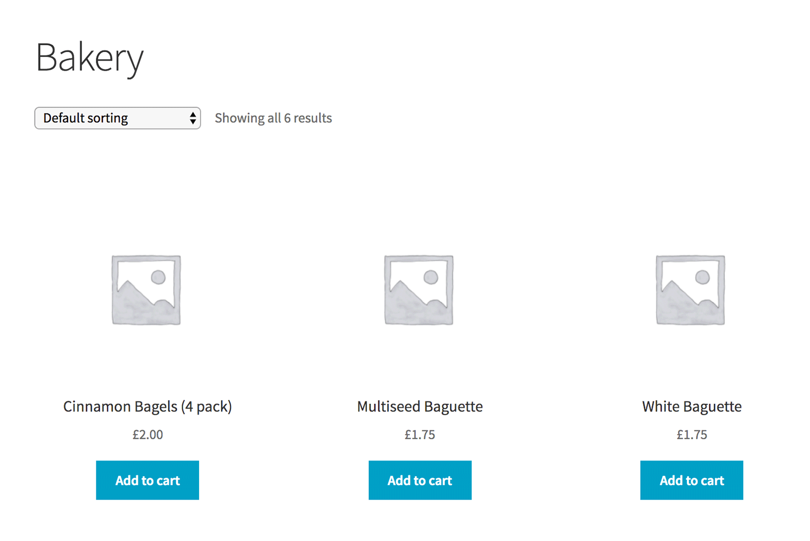 • Product filters - type categories into this box. This will add a filter dropdown of your product categories, so that customers can quickly view products from a specific category only (e.g. bread).