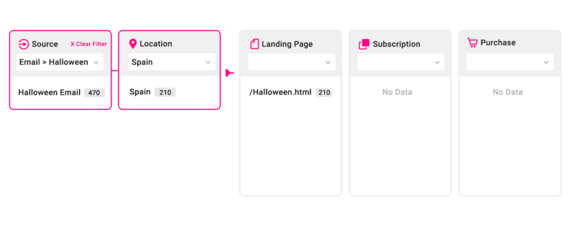 → Traffic from the Halloween email campaign and from Spain is 45% of the entire traffic generated by the campaign