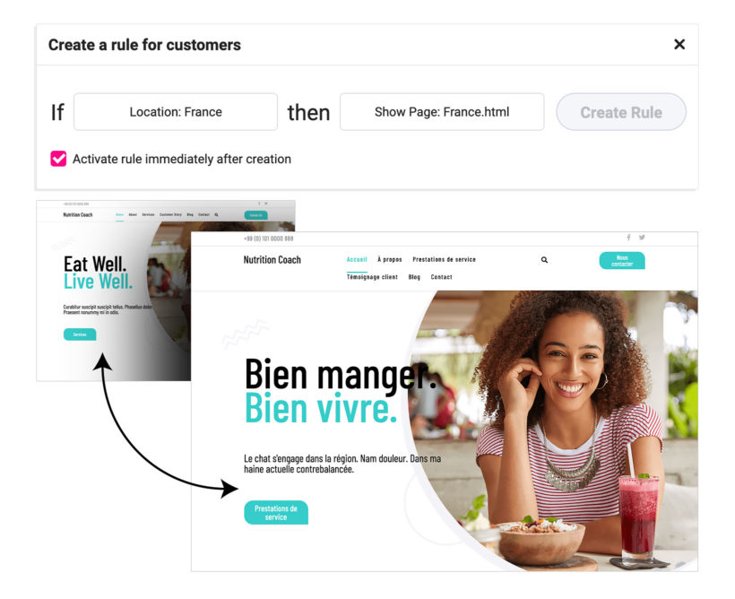 You can create a landing page personalized for the country or region that matters to you. One way you can implement personalization is by redirecting customers from a certain region to an independent domain and website. For instance, if you’re targeting the French market, your website URL might be yourbrand.fr and include a particular design along with other personalized content on that landing page.