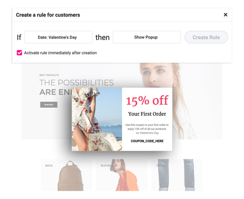 Use the Growmatik Date condition with the Show Popup action to automate personalizing popups based on customer important dates