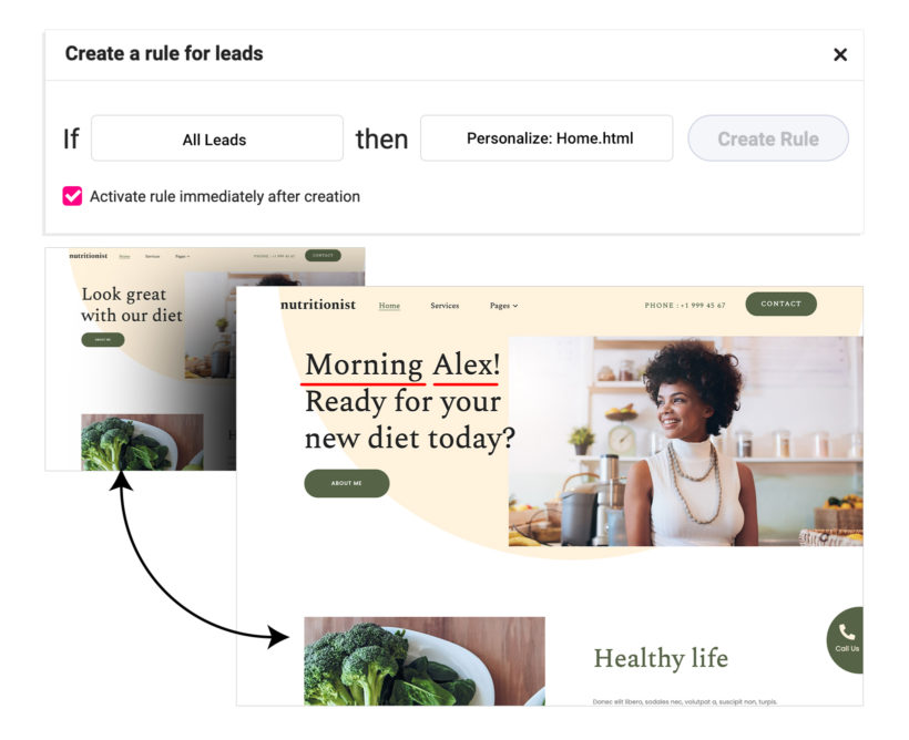 Use the Growmatik Personalize action to automate personalizing your hero based on time of the day, referral source or visitor’s location.