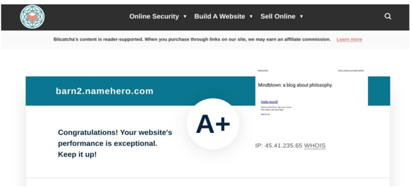 Using Bitcatcha, NameHero’s WooCommerce hosting scored an overall performance rating of A+. And this time time around its server speed was clocked at just a fraction of a second.