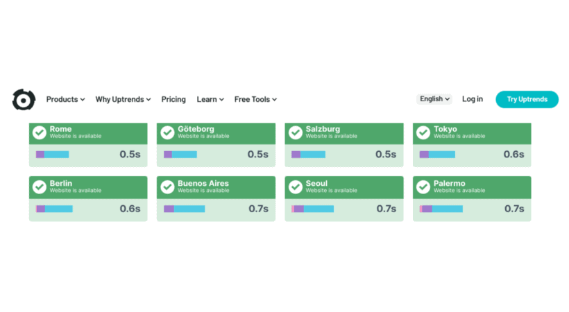 Here’s a snapshot of the results from UpTrends (the website monitoring app):