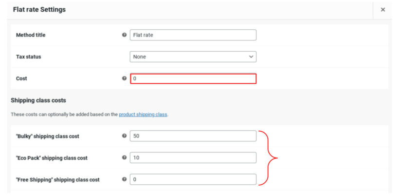 - Cost field for each of your WooCommerce shipping classes. Use this to enter the shipping cost for products within each shipping class.