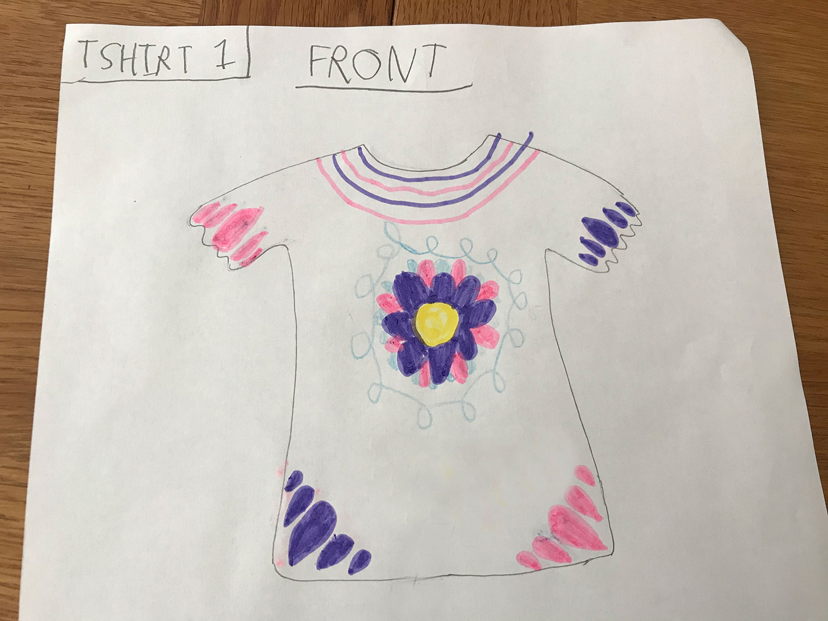 She immediately went to her playroom and within an hour had designed her first t-shirt - Purple Flower - and the company logo!