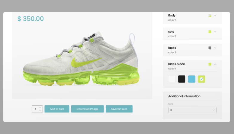 - It has comprehensive color options for customers to choose from and a color picker tool that lets customers easily apply their desired colors to products.
