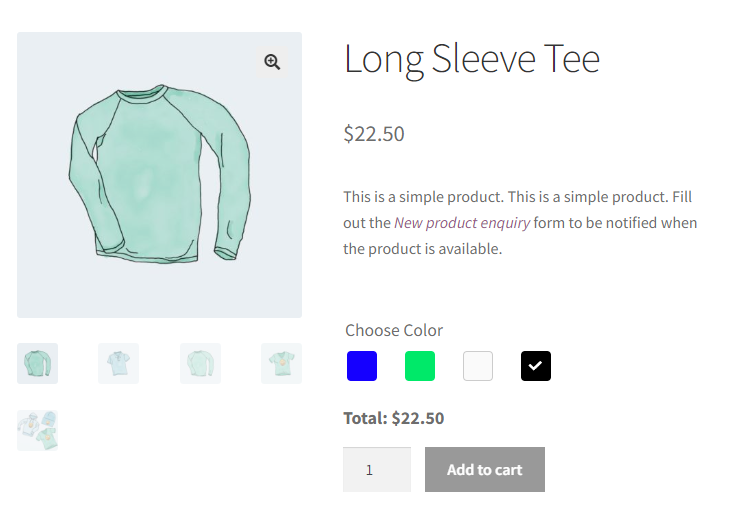 - Color swatches. If your product has unique color options, it might be best to display them using color swatches.