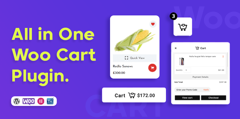 The All in One Woo Cart Plugin by ThemeHunk is the ultimate plugin you need to add to your WooCommerce Store. This plugin will add a Floating Cart with some extra functionality to your website.