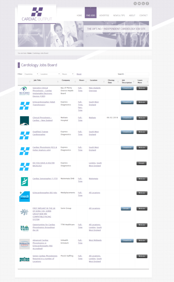Cardiac Output is a UK jobs site for cardiology vacancies. For more than twenty years Cardiac Output used a printed job bulletin. But with more people searching for jobs online, they realised they needed to build an online job board, too.