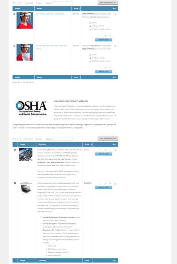 Dental Safety Solutions have made it simple to add products and programs to the shopping cart. Customers don't have to buy everything in the combo pack, they can mix and match from this page, too. They just need to either change the quantities of a product and click add to cart, or tick each box and add the items to the cart in bulk.