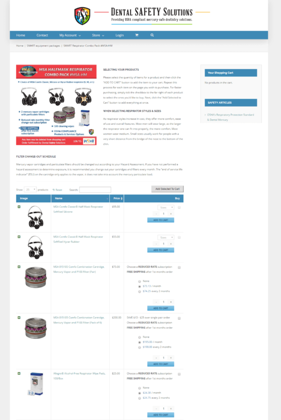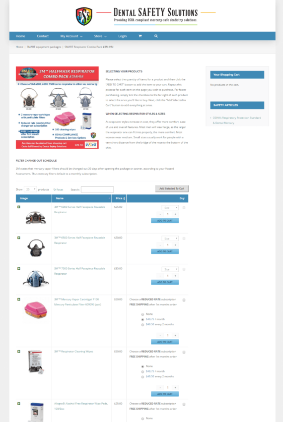 Dental Safety Solutions supply dentists across the USA with dentistry equipment. They sell the products online on their WordPress website. But to make it easier for their clients, they've created combo packs for their respirator equipment.