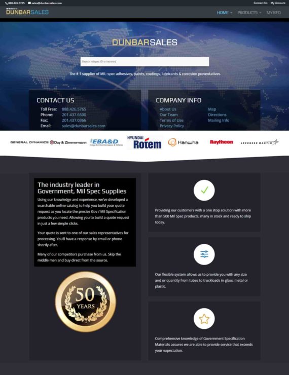 Dunbar Sales is a US company supplying MIL-spec adhesives, paints, coatings, lubricants and corrosion preventatives.