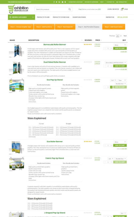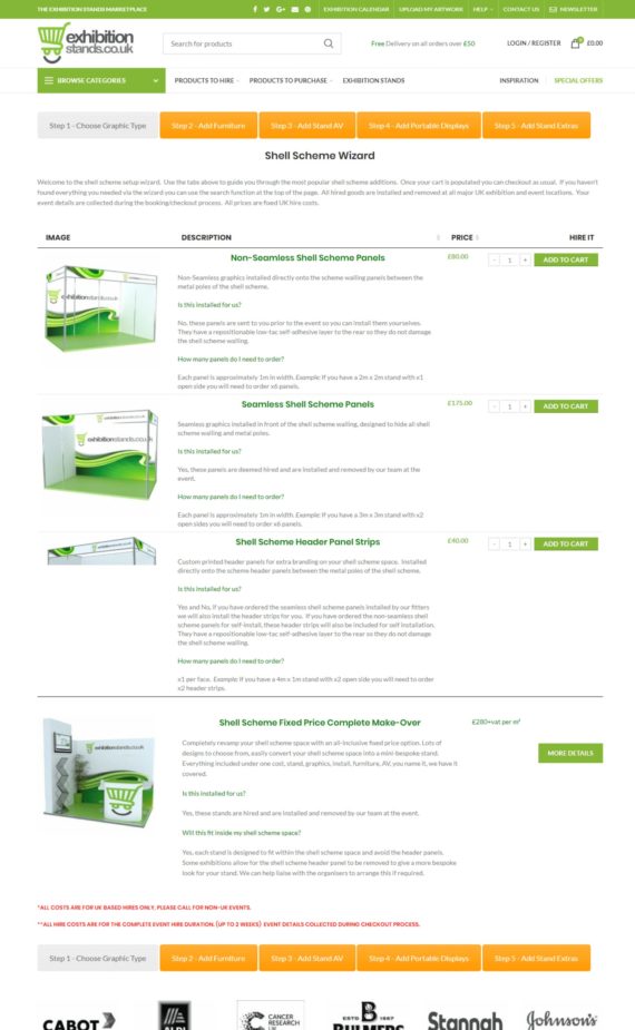 Exhibition Stands is a UK based exhibition company. They hire and sell exhibition stands using their WordPress WooCommere website. Companies can buy or hire everything they need to exhibit at a show.