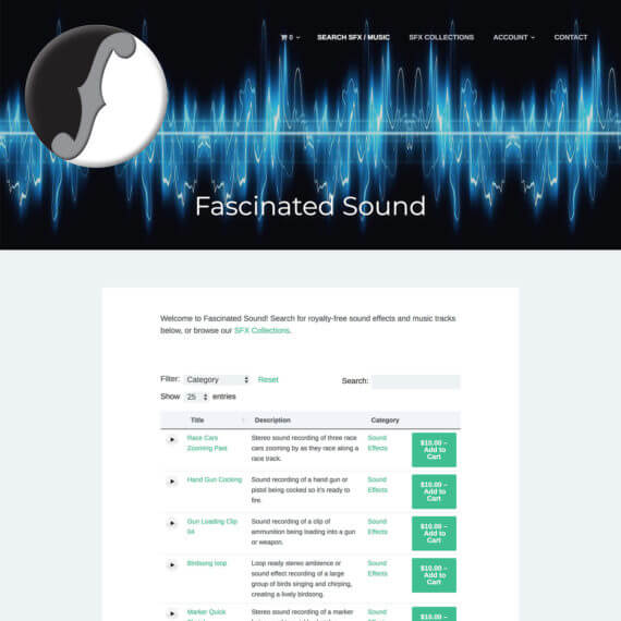 Fascinated Sound sell sound effects and music on their WordPress website. They were looking for an Easy Digital Downloads audio store plugin to list their music products with embedded media players.