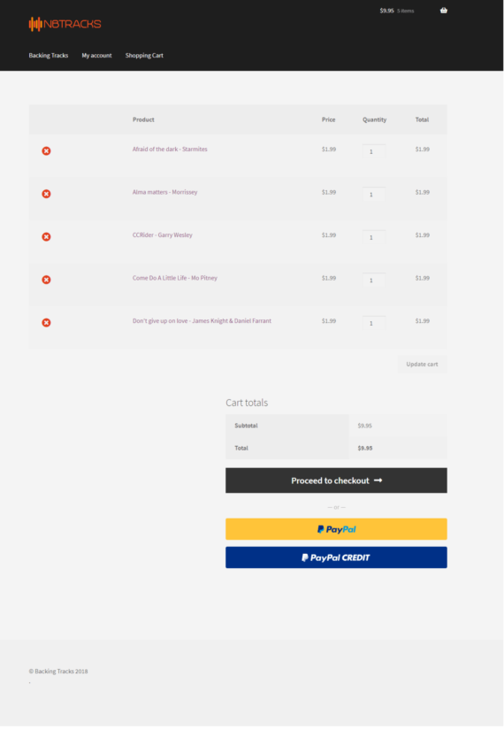 Customers simply sort the Woo audio table to find what they're looking for, add the track to their cart and click view cart to make their purchase.