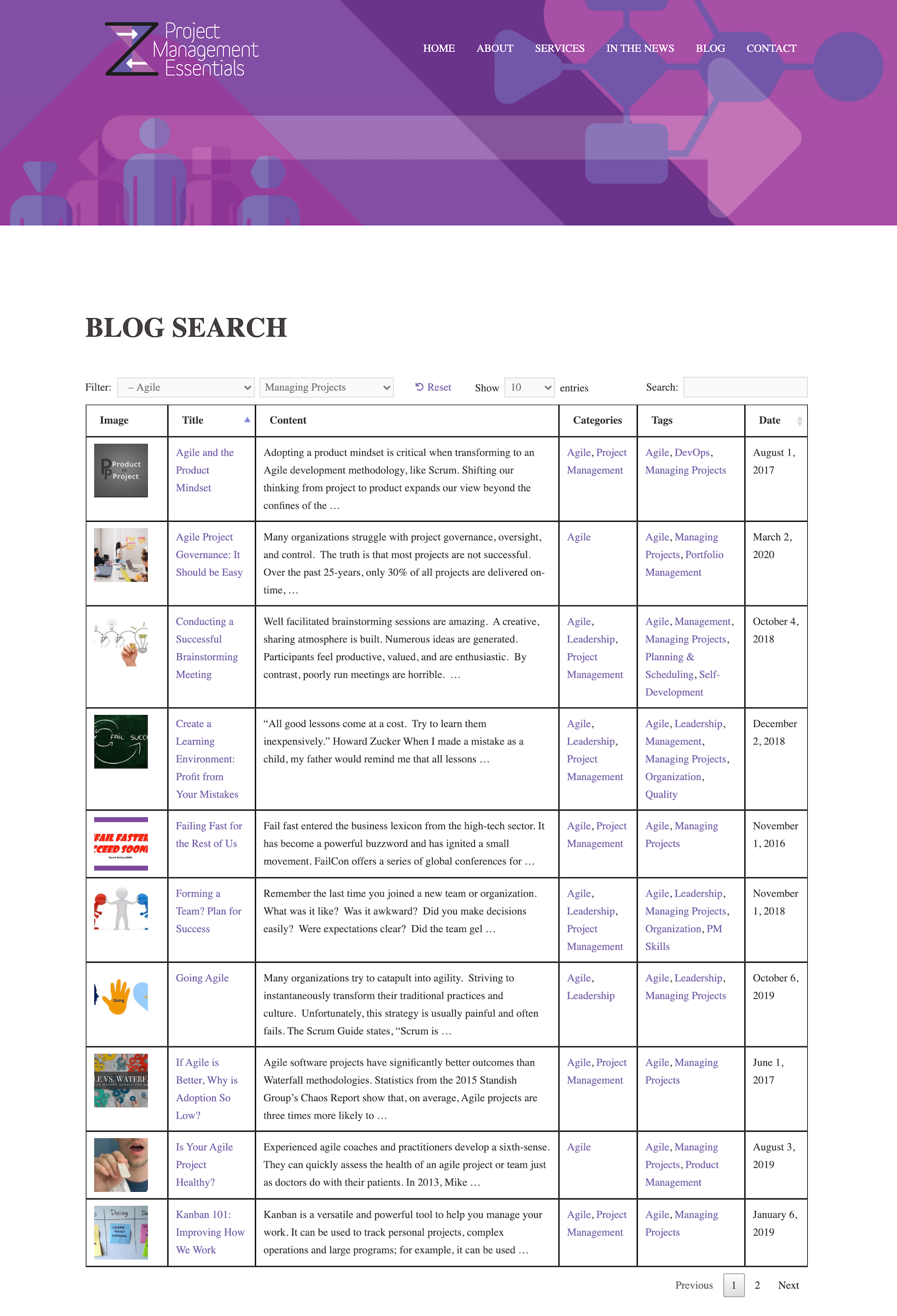 Project Management Essentials, founded by Alan Zucker, provides training and advisory services in project management, Agile transformation, and leadership. They used our Posts Table Pro plugin to make their large blog easy to search and navigate for readers.