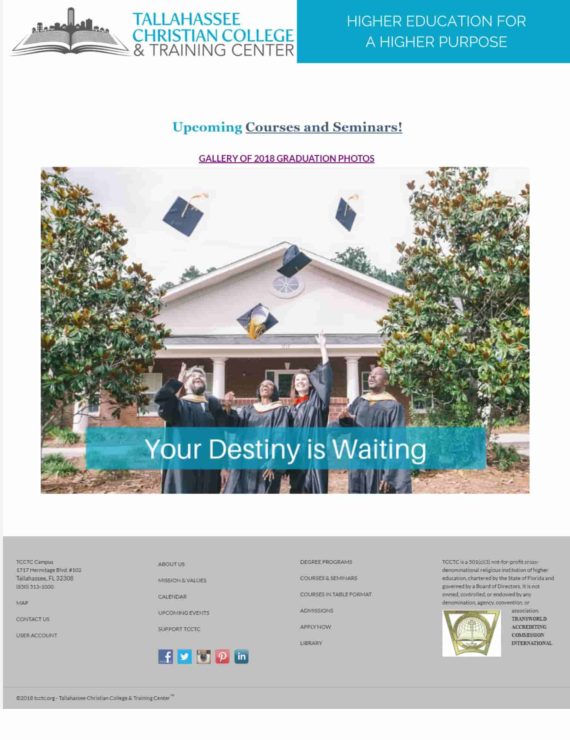 Tallahassee Christian College and Training Center offers higher education and training courses in Florida, USA. The college provides a wide range of courses for adults of all ages.