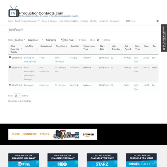 TVProductionContacts.com is the place to go to find contact details of people in the television production industry. It connects people in the same industry and facilitates networking. The site needed several filterable tables, including a sortable job board - and the Posts Table Pro plugin was the solution.