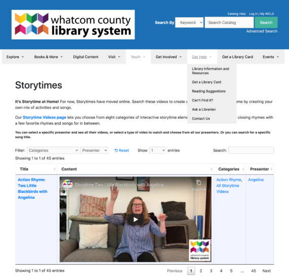 Whatcom Country Library System uses Posts Table Pro in two different ways in their Storytimes songs table and their Digital Content table: