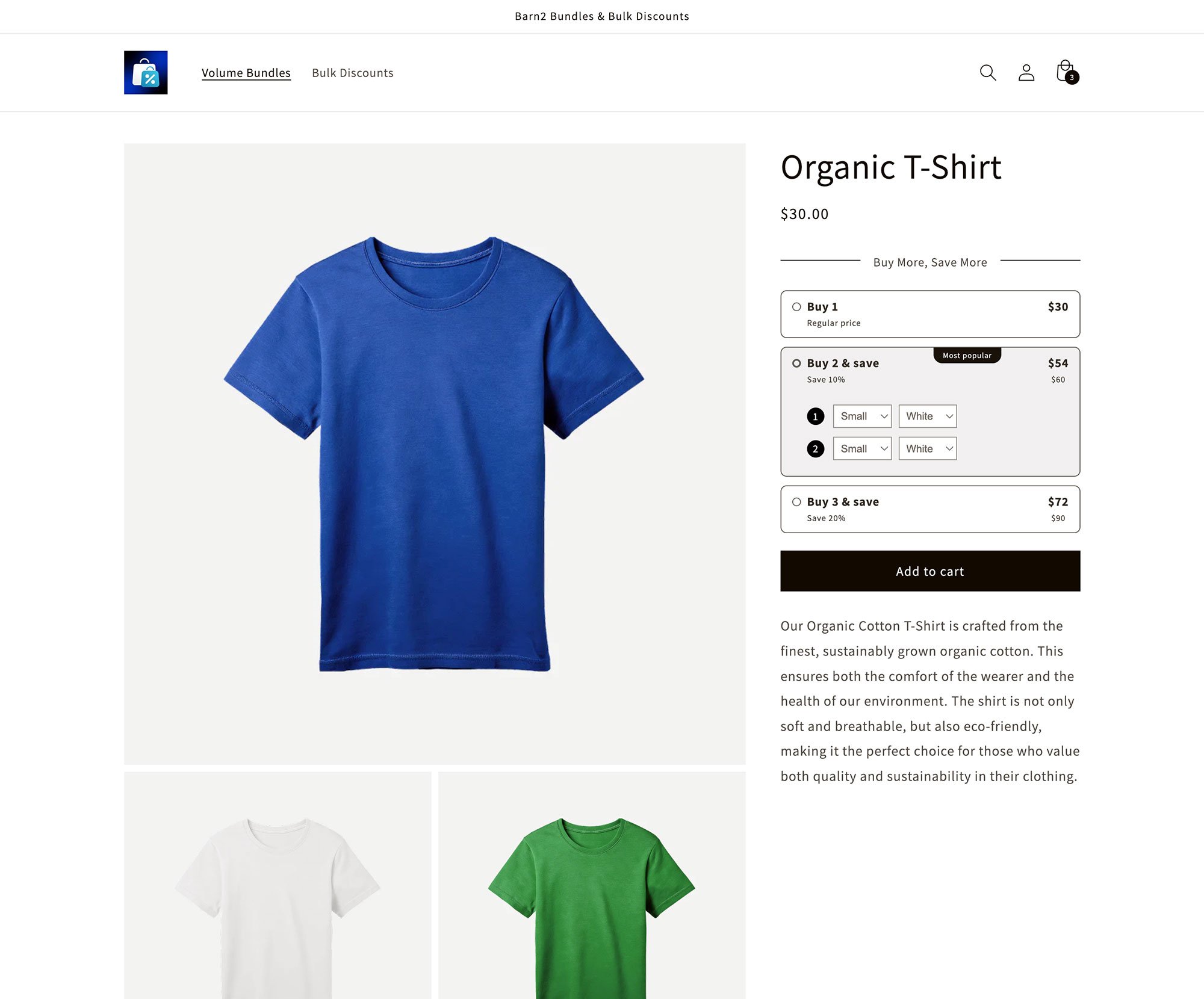 - Volume bundle - Display eye-catching discounts for buying fixed quantities of the same product.