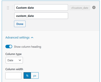 The Date column option lets you designate specific columns in your table as dates, so that the column can be sorted by date correctly. This can be useful for custom fields or taxonomies which contain dates, as otherwise they will be sorted alphabetically instead of by date.