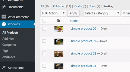 • Default WooCommerce order - Sort by the order listed in the Products menu when in the "Sorting" view.